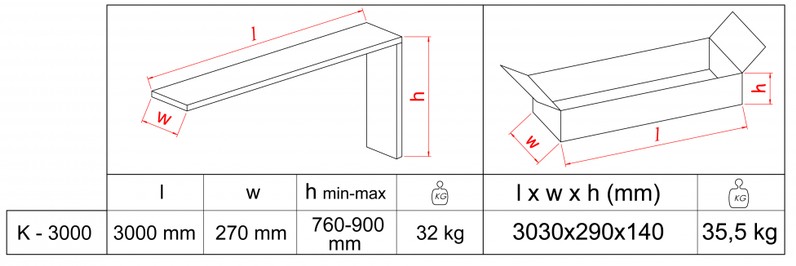 Prowadnica rolkowa z przymiarem manualnym z max długością odmierzania do 3000 mm. Możliwość regulacji wysokości roboczej oraz mocowania do maszyn w zakresie 140 mm. Regulacja wysokości położenia roboczego: 760 - 900 mm.