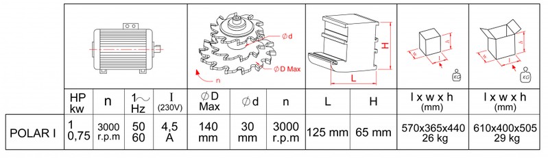 Frezarka wyposażona w jedną głowicę roboczą z możliwością zainstalowania 1 pakietu frezów na wałku roboczym.